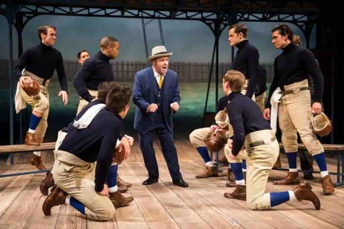 Impressive Equity lineup… The ‘Dream Team’ in this new version is front and center. Those long-associated with the material in the impressive Equity lineup - Stef Tovar(Rockne), Adrian Aguilar(Gipp) and Dara Cameron(Bonnie) - are joined by the formidable Chicago talents Rashada Dawan(Thelma), James Earl Jones II(Jimmy the Goat), James Rank(Father Walsh) and Brandon Springman(Coach Harper). Charlie Herman is perfect as young Billy Rockne. The high-energy ‘Special Team’ ensemble is the thrill of the show. Comprised of at least a dozen current students or recent Northwestern graduates, this spirited group of actors, singers and dancers play multiple roles and nail all the big numbers.