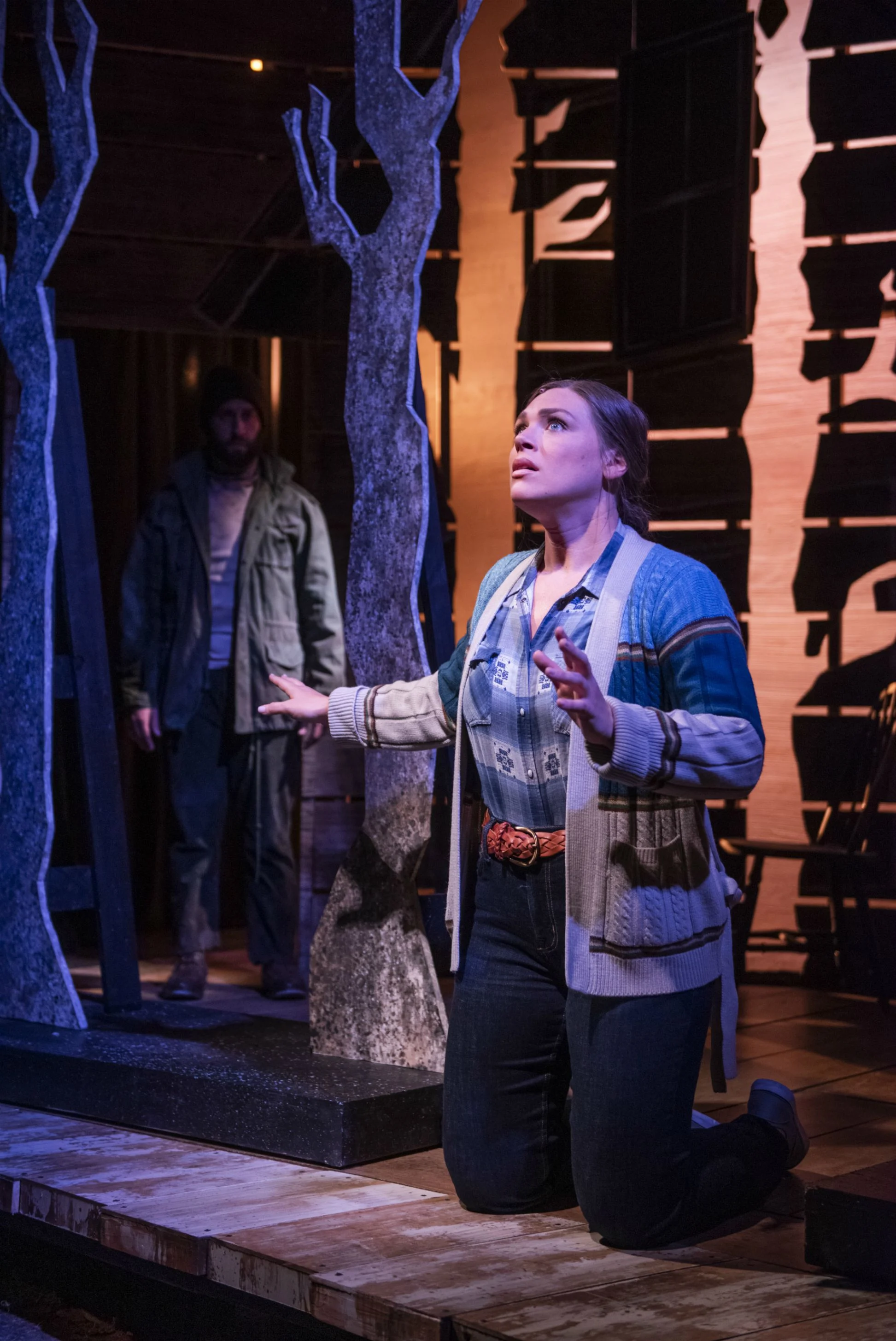 Mader has assembled a terrific company stoked with powerfully resonant voices, with none finer than Jones, who finds the anguished core of a resilient survivor striving to settle with her past in the capstone number, “Shine,” and Cameron’s beautifully rendered reflective ballad, “Wild Bird.” Johnson’s tender “This Wide Wood,” a searing rendition of “Forgotten Lullaby” by Smitko, Hamilton’s defiant “Digging Stone,” and the company number “Shoot the Moon” are among the many highlights in the earthy, homespun score.