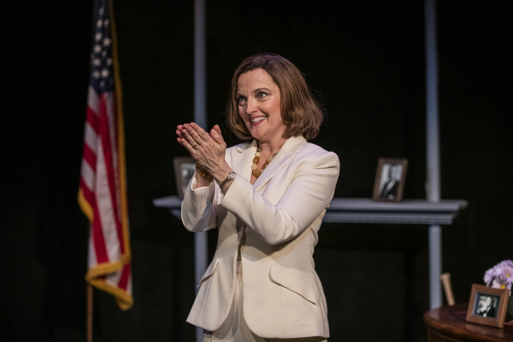 Up to this point, a rich backstory is underway, one that only about half of the voting public—and anyone from Maryland or California—might know, so the retelling turns out to be enlightening. McMahon chooses a linear path to tell his story, framed in 21st-century technology with two large, faux cell phone panels that engage you in the text conversation that drives the dialogue.
