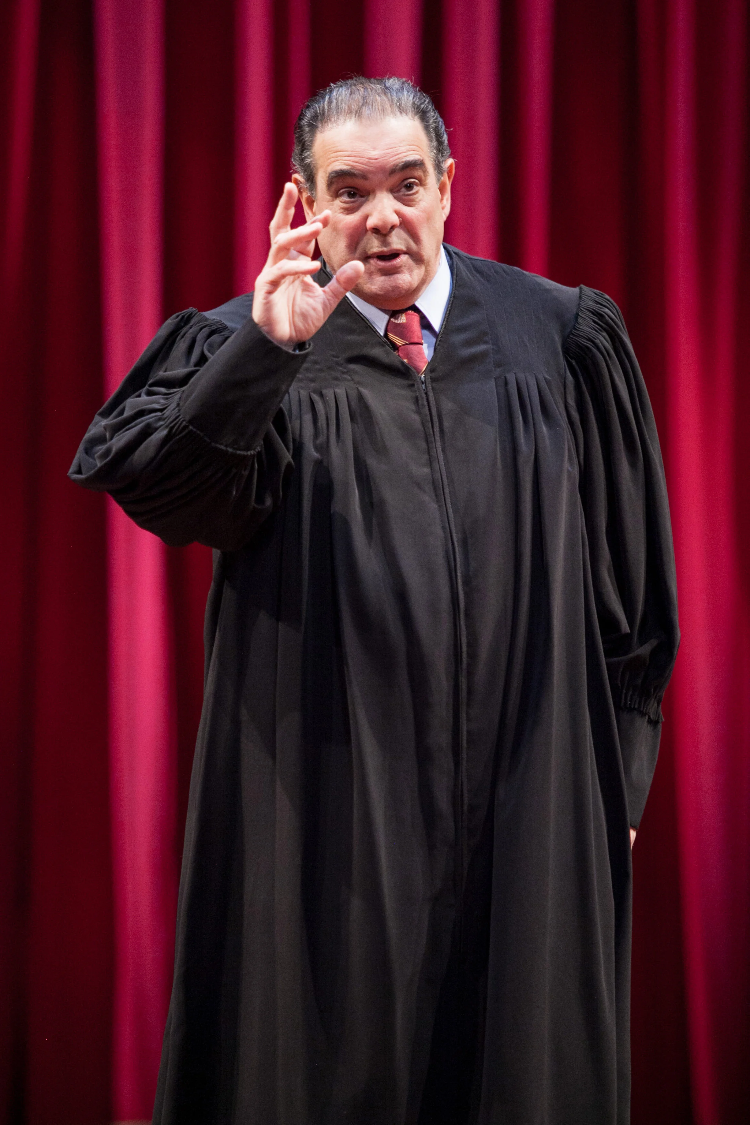 EG: “The challenging ones are the ones that you have to turn on a dime and then let it go. And you have to want to find some way to establish it as quickly as you can. … changing the voice or changing the physicality, that's the challenge of keeping the balls up in the air. It really is juggling. Not only is it epic, Homeric—because the original novel is written by an Italian—there's also the Virgil tradition,. There is the Commedia tradition. There is Fellini. There is circus. It really feels like a circus. You're juggling lines, you're juggling characters and the magic of it is to be able to transform in a beat and then let it go in a beat.”